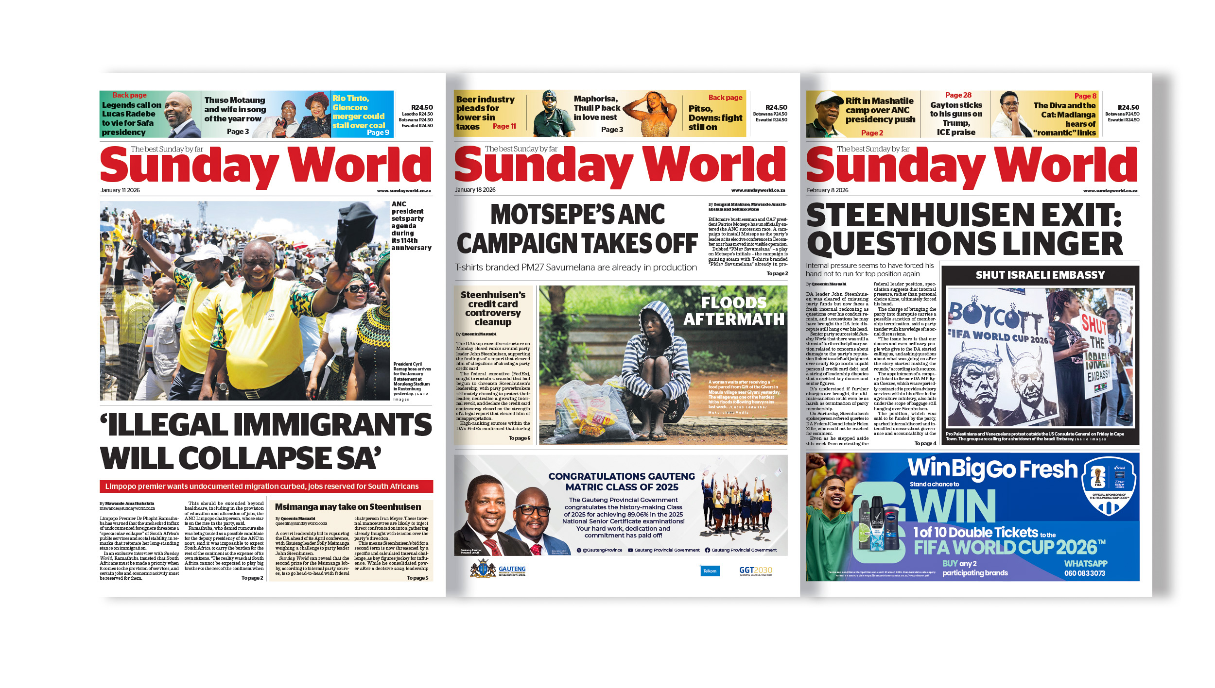 Launched in March 1999, Sunday World is bringing you fearless stories, deeper insights, and smarter conversations around politics, business, and lifestyle content that matters to South Africans. As your trusted source, we’re committed to holding power accountable, shaping meaningful dialogue, and building a healthier democracy.