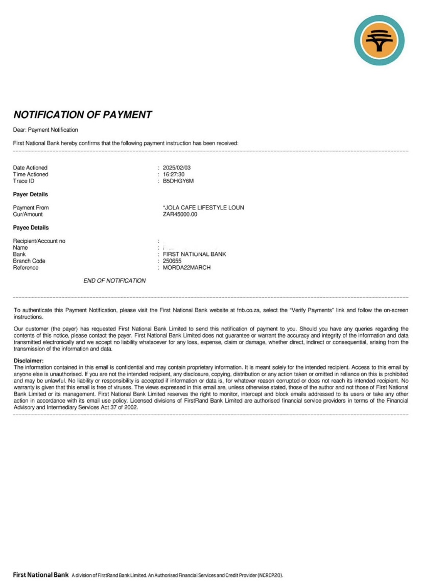 They further revealed that they had paid R45 000 to Morda.
