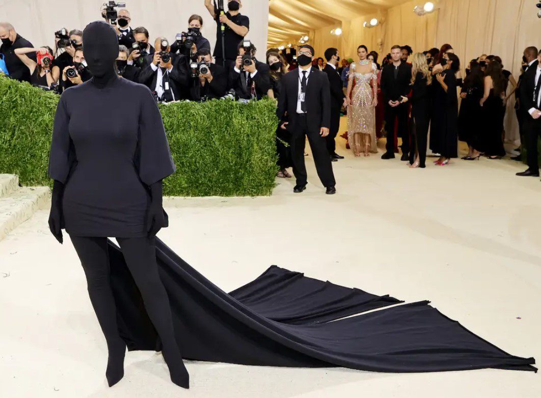 Kim has on several occasions collaborated with Balenciaga, the met gala 2021 faceless look being a memorable one.