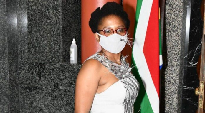 • Minister of Small Business Development and Acting Minister in the Presidency Khumbudzo Ntshavheni looked 12 in a grey dress that could have been left hanging at home.