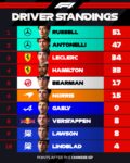 The teenager admitted the opening lap was tricky. “It was not an easy start,” Antonelli said. “Probably I covered a bit too much on the inside and gave too much room to the Ferrari.”