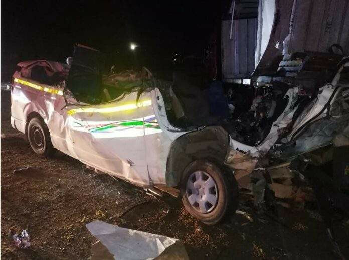 A minibus taxi with 15 occupants was travelling from Cradock entering Middelburg when it collided with an articulated truck head-on.