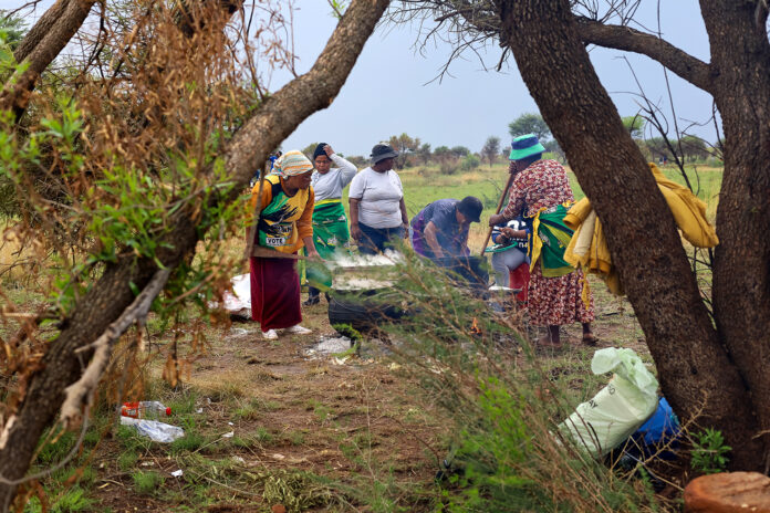 A few minutes later, Chauke, 52, got up to fetch wood from a nearby bush about 300 metres from the disused mine and handed it over to a group of women cooking food in three-legged pots.Â