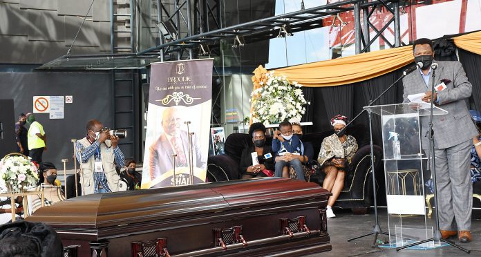 Johannesburg- A sombre atmosphere enveloped the Soweto Theatre in Jabulani yesterday where legendary actor Patrick Shai’s funeral services was held with solemn homily and moving reflections of his dream to fight gender-based violence (GBV) and femicide.