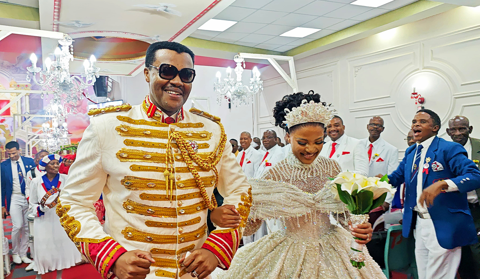 They then held hands and merrily danced to hymeneal songs belted out by guests and church members.