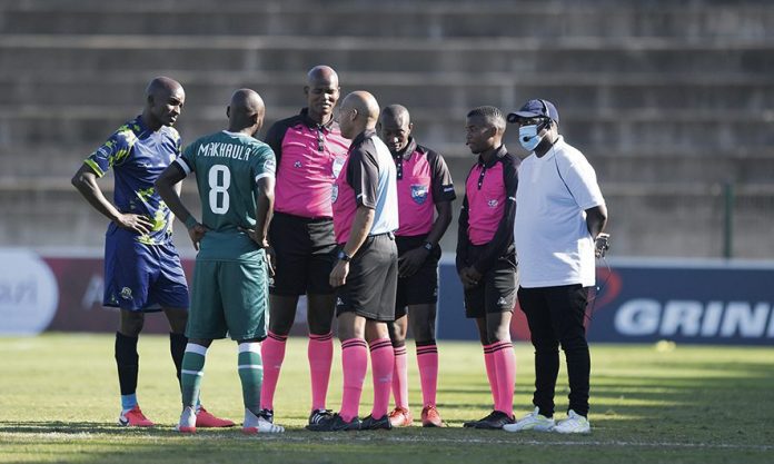 And what has become a sticky point in this saga of the identical kits is that the match commissioner Vincent Alie, fourth official Xolani Hlatshwayo, and the three-match officials – referee Christopher Kistoor and his two assistants Sibusiso Sisilana a Kamohelo Ramutsindela – were all blind to allow kick-off.