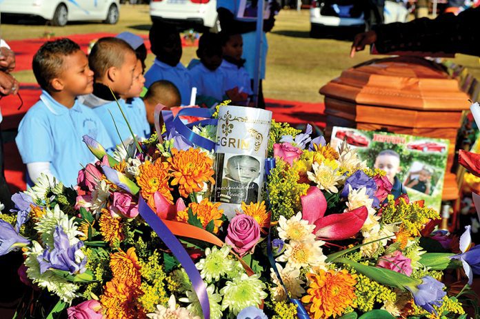Four-year-old Morris was in a VW Golf with his mother, father, and sister in Reiger Park, Boksburg, when three men approached them and ordered the family out of the vehicle. The young Taegrin was left hanging halfway out of the car by his safety belt and was dragged as the car was driven off by the hijackers.