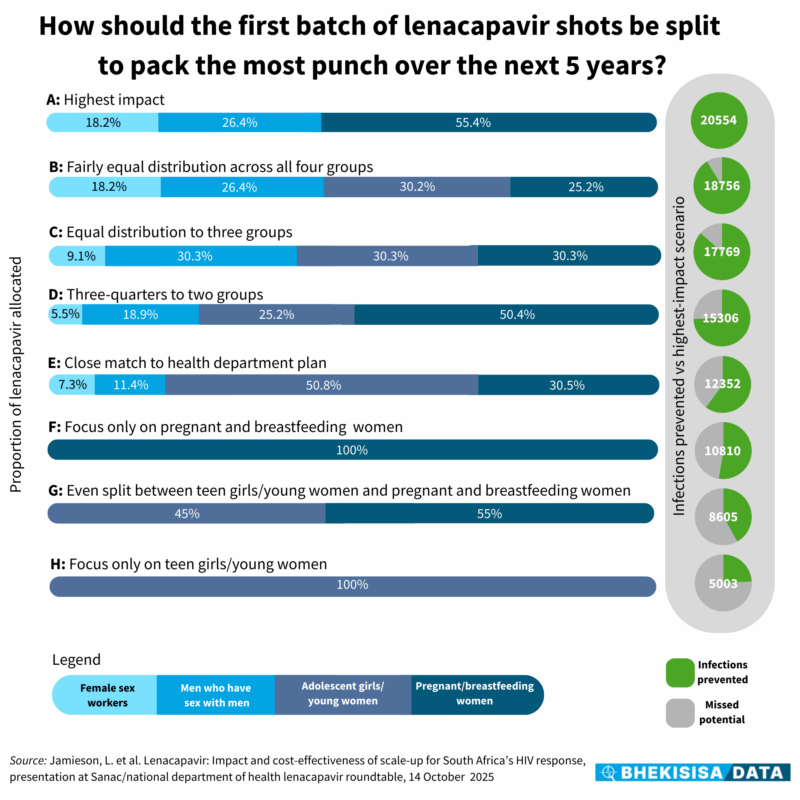 For example, if about three-quarters of the shots are made available to two groups—50% to pregnant and breastfeeding moms and 25% to teen girls/young women—just over 15 300 new infections could be prevented over the next five years.