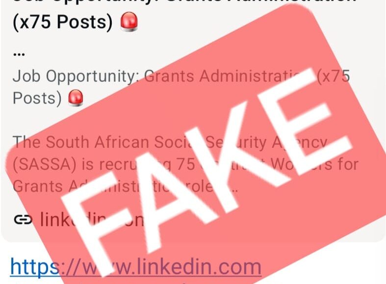 A job advertisement circulating on LinkedIn claiming to offer “grants administration” positions has been flagged as fraudulent by the South African Social Security Agency (SASSA).