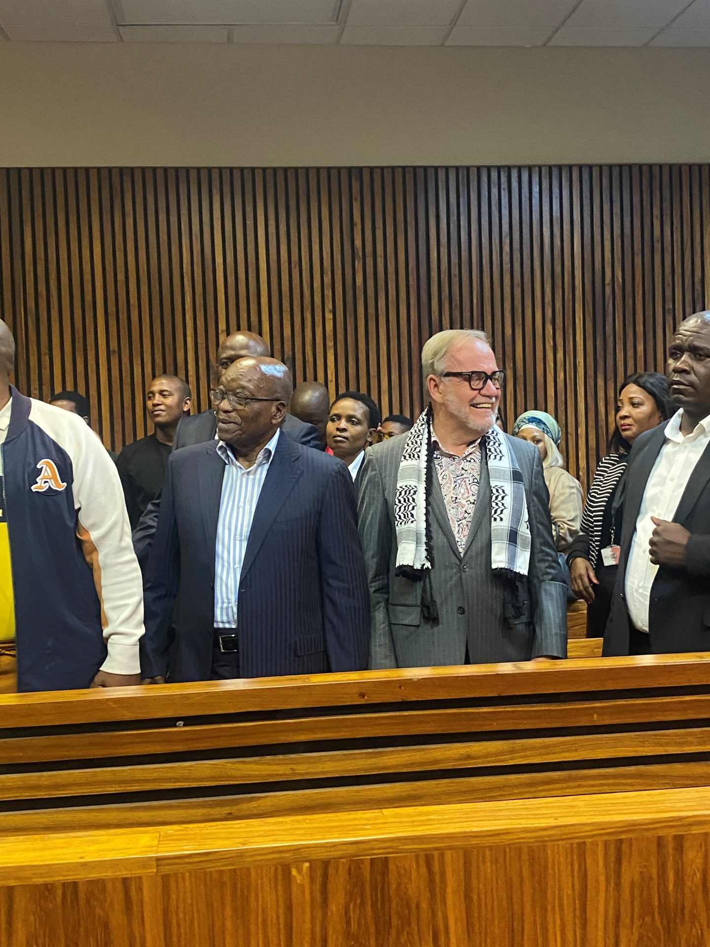 Inside court, former statesman Jacob Zuma and axed former ANC spokesperson Carl Niehaus took their seats in a show of support to the former Sigiya Ngengoma co-host.