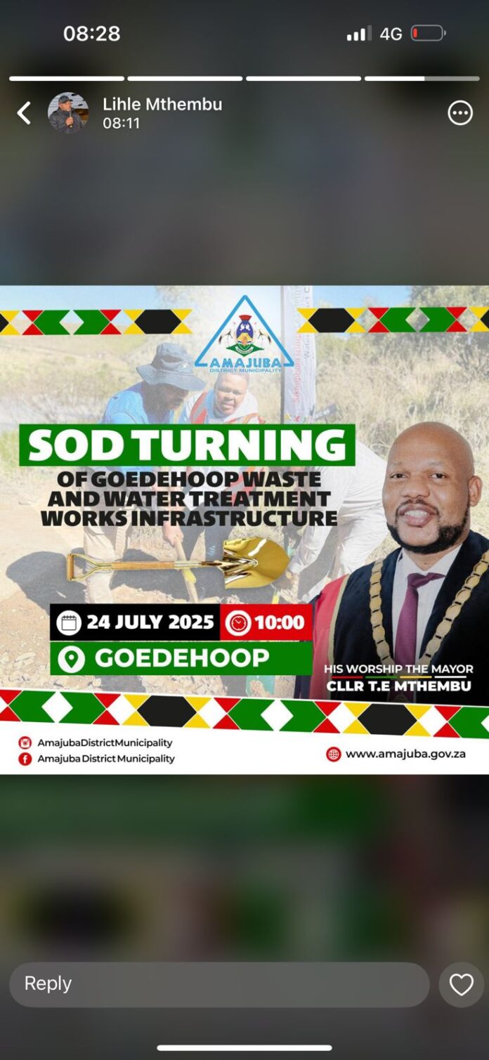 “In terms of section 49 of the Amajuba District Municipality Supply Chain Management Policy, a person aggrieved by decisions or actions taken in the implementation of the Amajuba District Municipality Supply Chain Management System must lodge within 14 days of the decision or action an objection or complaint. Objections or complains (sic) must reach the municipal managers’ office within 14 days from the date of this notice,” reads the notice.