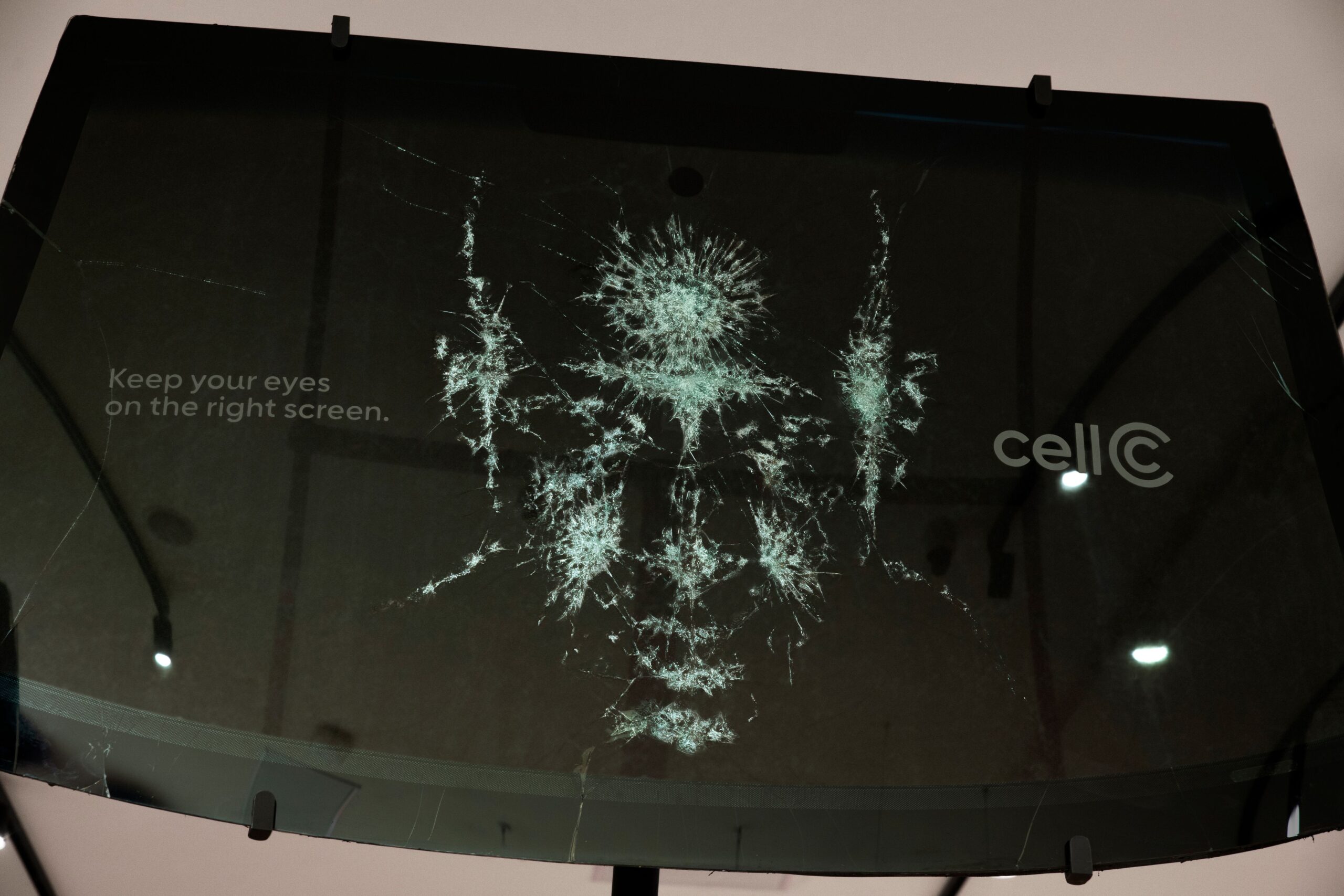 Created in partnership with visual artist Sandile Kgaphola, the campaign features haunting glass artworks that capture the devastating split-second consequences of distracted driving. The pieces are displayed prominently in Cell C retail locations nationwide, reaching customers at the very point where they engage with mobile technology.