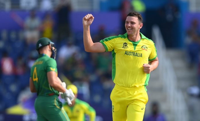 Hazlewood completed his wicket maiden before South Africa stuttered to 29 for three at the end of the powerplay.