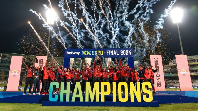 In the season finale at Newlands Stadium in Cape Town on Saturday, the Sunrisers Eastern Cape successfully defended their title with an impressive 89-run victory over the Super Giants of Durban.