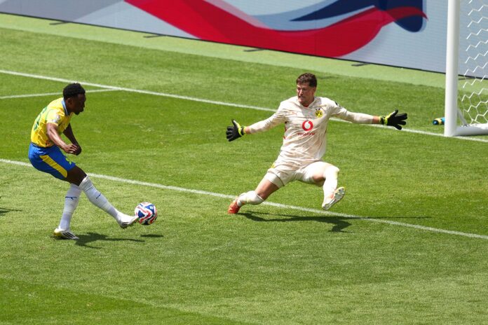 Sundowns’ red-hot striker Iqraam Rayners reduced the debt to 4-2 when his header from the rebound beat goalkeeper Gregor Kobel hands down. It was his second goal of the tournament and Sundowns were encouraged, and they pushed more men forward and also made a couple of tactical substitutions. Super-sub Lebo Mothiba made it 4-3 but it was so close and yet so far for the Tshwane outfit.